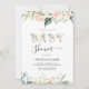 Celebre o chuveiro do seu pequeno com um suspiro de boas-vindas. Rosas rosa pálido e folhagens com letras florais douradas de BEBÊ. Design moderno e elegante.