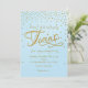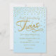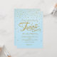 Convite de Chuveiro de Bebê Gêmeos Azul Claro e Pontos Dourados.