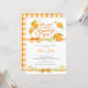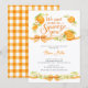 Este convite de chuveiro de bebê Little Cutie apresenta laranjas aquareladas, flores suaves e laços de gingham amarelo em um design doce inspirado em cítricos. Perfeito para um chuveiro de bebê laranja, chuveiro de bebê cítrico, Não Podemos Esperar para Apertar Você chuveiro de bebê, chuveiro de bebê de verão ou chuveiro de bebê neutro. Este convite de chuveiro de bebê de frutas tem uma aparência alegre, fresca e elegante que é perfeita para uma celebração de um pequeno querido.