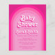 Um convite de chuveiro de bebê econômico para uma menina, em tons de rosa e magenta, com um arco-íris e fontes funky com efeito de texto sombreado retrô para a ocasião e nome.