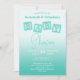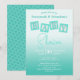 Este design divertido apresenta um fundo degradê turquesa e blocos de BEBÊ correspondentes. Personalize os campos de texto com suas informações, remova o texto ou clique em personalizar para selecionar um estilo de fonte, tamanho e cor que você gosta. O verso é rosa com um padrão de blocos de moldura branca.