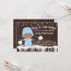 Convite de baby shower Baby it's cold outside com adorável menino étnico vestido com um bebê azul e chapéu de neve em um fundo rústico de madeira e flocos de neve. Esses convites de baby shower de flocos de neve de inverno para meninos são facilmente personalizados para o seu evento, basta adicionar seus detalhes.