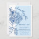 Elegante e encantador, este convite de chuveiro de noiva azul suave apresenta delicada arte floral desenhada à mão. Perfeito para celebrar a noiva, estabelece um tom gracioso para uma reunião “Algo Azul Antes de Eu Me Casar”.
