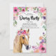 Convide os convidados para um chá de noiva sofisticado ao estilo Derby. Este convite floral elegante apresenta uma ilustração graciosa de cavalo e uma moldura de buquê vibrante. Personalize nomes, data, hora e local para se adequar ao seu evento.