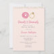 Convite de Chuveiro de Noiva com donuts Rosa pintados à mão em aquarela e aliança de noivado.