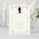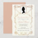 Um convite para um chuveiro de noiva temático de Regência, recomendado para fãs de Jane Austen ou da série Bridgeton.