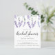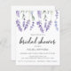 Convites de Chuveiro de Noiva Lavanda Românticos. Bela lavanda em torno de texto moderno e elegante com textura de aquarela. Personalize este chuveiro de noiva com suas informações e qualquer mensagem personalizada que você gostaria de incluir.