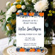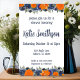 Este convite de chuveiro floral laranja e azul marinho é igualmente rústico e moderno, tornando-o perfeito para o seu próximo evento! Uma borda de rosas laranja e azul marinho, lírios, malmequeres, crisântemos e folhagens envolve uma combinação de texto azul marinho em letra cursiva e manuscrita para um visual atemporal e feminino! Este convite floral delicado é a adição perfeita para o seu próximo chá de noiva, chá de casamento ou chá de bebê!