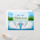 Arte original de design de dois cisnes em um convite personalizável pela designer Carolyn McFann do Two Purring Cats Studio.