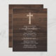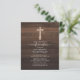 Nosso convite de comunhão com cruz de fundo de madeira rústica moderna é perfeito para uma comunhão de meninas e meninos com tipografia e escrita modernas.