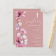 Este elegante cartão postal de convite de primeira comunhão floral transparente rosa poeira pode ser personalizado com suas informações em tipografia chic com seu monograma no verso. Criado por Thisisnotme©