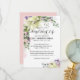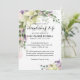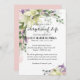 Anúncio de Funeral Memorial pintado em lírios florais brancos em aquarela, íris azul, minúsculas flores de pêssego com folhagens variadas. A frente do Convite de Celebração de Vida permite que a pessoa que foi muito querida seja lembrada e fornece informações da igreja ou centro cívico com horário e data. Uma cor suave de pêssego claro foi adicionada na parte de trás para completar o design.