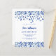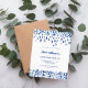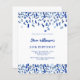 Um moderno, elegante e convite. Um fundo branco decorado com confete azul. Personalize e adicione um nome e detalhes. Texto azul. 1 folha = 1 convite impresso de borda a borda.