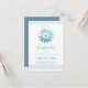 O convite de confirmação deste na moda e do moderno apresenta uma janela de igreja roseta com estilo de vidro manchado e um design decorativo complementar azul e verde ao longo das bordas superior e inferior do convite. A cor e o texto de fundo podem ser personalizados para a sua ocasião religiosa especial.
