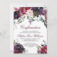 Convite de confirmação química com flores a aquarelas em borgundy marsala, cor-de-rosa-esbranquiçada e roxo, com folhagem botânica verde e folhas de eucalipto. Uma bela escolha em cores de tom de joia saturada e luxuosa para as comemorações do outono ou do inverno.