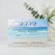 Elegante cartão de confirmação de casamento na praia ou destino com uma pintura colorida da praia. O texto estilizado de confirmação na frente é uma imagem separada e pode ser excluído se você preferir texto personalizado. Você pode personalizar todos os textos, também alterar fontes e mais. Para todas as opções, escolha "personalizar". Este cartão de confirmação faz parte de uma coleção de casamento com produtos correspondentes.