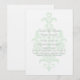Moderno com elegância chique descreve este sofisticado Anúncio de Confirmação de Data com Seda Sutil com um fundo de florescimento de damasco verde menta claro. Este convite de confirmação de data é perfeito para anunciar um casamento tradicional e pode ser facilmente personalizado com os detalhes do seu casamento. Para mais opções de personalização, clique no botão Personalizar.