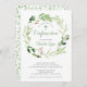 Lindos convites de Confirmação com uma coroa verde macia e cruz sobre fundo branco. Sacudir nosso convite para ver uma coordenação de volta para um toque especial extra. Visite nosso compro para ver nossa coleção inteira de folhas.