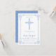 Este convite de confirmação elegante e clássico apresenta uma cruz desenhada de blues e branco com uma borda detalhada correspondente. Perfeito para sua ocasião religiosa especial, o texto e a cor de fundo podem ser personalizados de acordo com seu gosto.