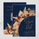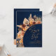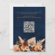 Convite de casamento moderno e deslumbrante com código QR para confirmação de presença, apresentando elementos florais de grama pampas boho em terracota, tons rústicos de cabana de outono com fundo azul marinho vibrante. Adicione o URL do site do seu casamento no verso do cartão e o código QR será atualizado, ou exclua se não necessário. Clique em personalizar para editar.