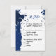 O convite de confirmação de presença para celebração de casamento artístico com salpico de tinta azul real decora. O design dá liberdade para alterar a cor de fundo azul. Ao combinar o fundo com as cores do seu casamento, lembre-se de modificar a cor da fonte. Para personalização e perguntas sobre o design, entre em contato com https://kbmd3signs.com/contact/.