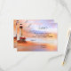 Convite de confirmação de presença para casamento elegante ou cartão anexo com pintura de um farol na praia com gaivotas ao pôr do sol. Este cartão combina com vários convites de casamento e noivas.