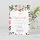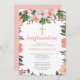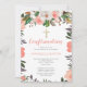 Um design floral na moda em coral e uma escova tornam este convite de confirmação perfeito para o dia especial da sua filha. Flores de aquarela e folhagem e uma simples cruz de ouro. Modelos fáceis de usar ajudam a adicionar suas informações. Se precisar de ajuda, entre em contato com o designer que pode ajudá-lo.