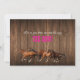 Este convite único apresenta um cavalo real segurando um chapéu de cowboy em frente ao deserto com um fundo de madeira. Personalize com os detalhes da sua festa em um papel de estilo antigo.