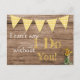 Sua madrinha vai adorar este cartão pedindo a ela para fazer parte do seu casamento. O mesmo design de girassol rústico faz parte de uma coleção. Este convite de madrinha é perfeito se você está tendo um casamento casual em um celeiro. Com seu fundo de madeira rústica e belo jarro de conserva com girassóis, é ideal para um casamento country de tema western. As bandeirinhas ou flâmulas xadrez dizem a todos que vai ser divertido.