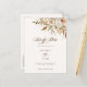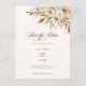 O romance de um casamento de Outono é capturado neste design elegante com rosas em aquarela e folhagens em cores quentes de outono, como terracota, marfim, ferrugem, castanha, azul poeirento e verde sage com toques de brilho em folha de ouro. Este design também apresenta gráficos de texto exclusivos em uma fonte de caligrafia personalizada com cor que pode ser personalizada usando o editor de design.