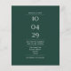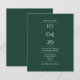 Um design de convite de casamento econômico moderno e minimalista com a data especial e detalhes do casamento em tipografia clássica e sofisticada em um fundo esmeralda.
