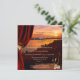 Convite de festa de degustação de vinho romântico com um pôr do sol em um rio com copos de vinho e rosas. Uma bela cortina de veludo com folhas de videira adiciona estilo. Embora criado para uma celebração de aniversário, você pode personalizar este convite para qualquer ocasião.
