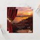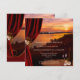 Convite de festa de degustação de vinho romântico com um pôr do sol em um rio com copos de vinho e rosas. Uma bela cortina de veludo com folhas de videira adiciona estilo. Embora preparado para uma celebração de aniversário, você pode personalizar este convite para qualquer ocasião.
