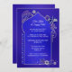 Um elegante convite de recepção de casamento, após ou depois do casamento, apresentando padrões estilizados de henna prateada impressos em um fundo azul índigo e roxo profundo. Lindos para uma celebração de casamento de estilo indiano ou árabe.