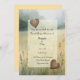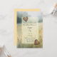 Um simples convite de design de casamento no interior de tons rústicos de amarelo e verde em meio a um céu sombrio.