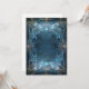 Um elegante e ornamentado fundo com uma moldura de cartão azul vazio para escrever, rodeado por padrões giratórios e desenhos intrincados em tons de cinza escuro e dourado claro, com sugestões sutis de energia mágica brilhando sutilmente dentro do design. O efeito geral é aquele que sugere luxo ou fantasia.