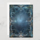 Um fundo elegante e ornamentado com uma moldura de cartão azul vazio para escrever, rodeado por padrões giratórios e desenhos intrincados em tons de cinza escuro e dourado claro, com sugestões sutis de energia mágica brilhando sutilmente dentro do design. O efeito geral é aquele que sugere luxo ou fantasia.