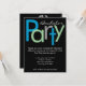 Convite de despedida de solteiro elegante, ou personalize para qualquer ocasião. Letreiro em estilo de bloco divertido e alegre em verde, azul e cinza em fundo preto. Design contemporâneo elegante é perfeito para uma última farra, última noite, las vegas ou noite de rapazes. Personalize online com os detalhes do seu evento.
