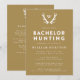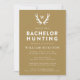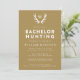 Convide os convidados para uma viagem de caça ou fim de semana para celebrar o noivo com estes convites de despedida de solteiro temáticos de caça. Este design apresenta chifres e um monograma, com texto totalmente editável na frente e verso do convite. Seja sua viagem um fim de semana, uma viagem de dois dias ou algo maior, você pode personalizar este design para atender às suas necessidades.