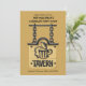 Um convite "masculino" maravilhoso com uma placa de taberna com uma caneca de cerveja. O fundo é dourado escuro e a placa é dourada clara e está pendurada em uma grossa corrente preta. Perfeito para qualquer celebração masculina.