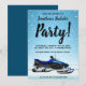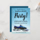 Dê início à despedida de solteiro certa com este divertido convite de despedida de solteiro de moto de neve azul de inverno. Apresenta um fundo nevado com um trenó de moto de neve azul. Qualquer texto neste convite é simples de personalizar com os detalhes da sua festa. A parte traseira é de uma cor azul sólida, mas você pode adicionar os detalhes da sua festa ou até mesmo uma foto com a ferramenta de design simples.