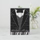 Convite de despedida de solteiro elegante, ou personalize para qualquer ocasião. Fundo listrado preto e branco de zebra com design de smoking e gravata borboleta. Design contemporâneo elegante é perfeito para uma última farra, última farra, las vegas ou noite de rapazes. Personalize online com os detalhes do seu evento.