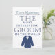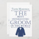 É o seu último hurrah antes de se estabelecer! Por que não começar as festividades com um convite engraçado e legal que deixe todos os rapazes sabendo que o convidado de honra é... o noivo mais interessante do mundo! Este convite de despedida de solteiro "Most Interesting Groom" em azul escuro apresenta um design de texto em negrito e um smoking elegante. Fácil de personalizar, basta adicionar os detalhes da festa selvagem que você planejou nos campos fornecidos. Clique no botão "Personalizar" para encontrar opções adicionais de personalização.