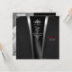 O vestido de noiva real e o terno do Groom com tapete vermelho. Um profundo e rubi pico vermelho de bolso mostrando a data do casamento com noiva e nomes de noivos conectados a um nó de amor de diamante em um rico damasco preto com limite de sotaque de diamante.