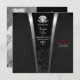 O vestido de noiva real e o terno do Groom com tapete vermelho. Um profundo e rubi pico vermelho de bolso mostrando a data do casamento com noiva e nomes de noivos conectados a um nó de amor de diamante em um rico damasco preto com limite de sotaque de diamante.