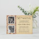 Convites de aniversário de 50 anos de casamento com inserts emoldurados para duas fotos em fundo de pergaminho simulado vintage rústico e acabamento em damasco. Envie suas fotos e adicione os nomes, data e detalhes. Altere o texto para personalizar facilmente para outras ocasiões especiais e celebrações de marcos felizes -- festas de aniversário de 25, 30, 40, 45, 60, 65, 70 anos, festa surpresa, casamentos, salve a data, ou qualquer evento único. Tamanho mostrado: 4.5 x 6.25. Clique em Personalizar para alterar as opções de tamanho e acabamento do papel.