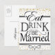 convite de Eat Drink and be Married com confetes dourados e letras personalizadas