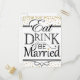 convite de Eat Drink e casados design de convite com confetes dourados, letras personalizadas