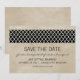 Anúncios de Salvar a Data Elegantes e Sofisticados com Quatrefoil Rústico, apresentando um fundo com textura vintage e uma borda de padrão moderno em preto e branco. Fácil de personalizar, basta adicionar os detalhes do seu casamento. Clique em "Personalizar" para encontrar mais opções de personalização.