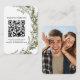 Compartilhe o site do seu casamento com facilidade usando este Cartão de Enclosure de Casamento com Vegetação, apresentando um código QR, espaço para foto e fontes retrô. Perfeito para casais modernos que desejam um toque elegante e interativo para o seu conjunto de casamento.